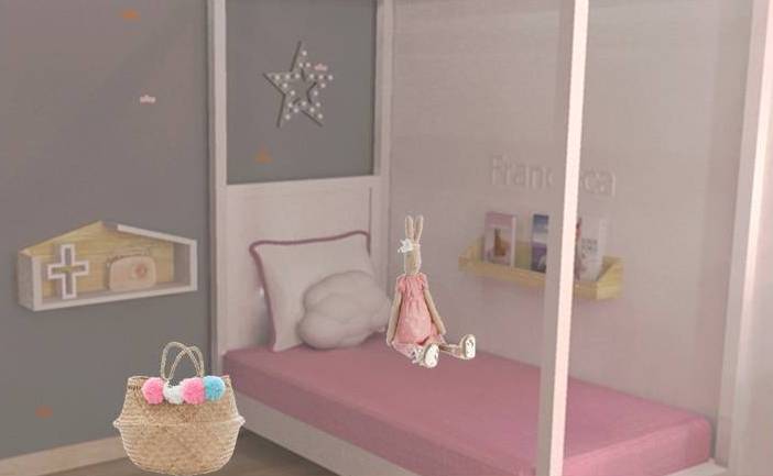 A Francisca gosta que o quarto tenha espaço, muito espaço para ela brincar com as amigas e primas que a visitam regularmente. Já tem um quarto para brincar. Este é para dançar as musicas do Frozen e da Violleta, para contar histórias, para dormir e estudar.